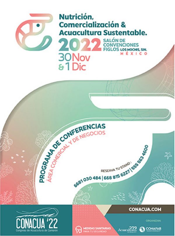 El 31 de noviembre y 1° de diciembre, el Consejo Nacional de Fabricantes de Alimentos Balanceados y de la Nutrición Animal (CONAFAB) en coordinación con Acuacultores de Ahome, realizamos el Congreso de Acuacultura de Camarón (CONACUA) 2022, en el que contaremos con la participación de expertos nacionales e internacionales, que abordarán temas de interés para mejorar la producción y comercialización de la especie.
